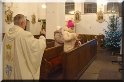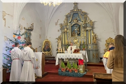 W święto św. Jana Ewangelisty (27 grudnia) ksiądz proboszcz Ireneusz Nowak poświęcił wino przyniesione przez wielu parafian. Legenda głosi, że apostoł przeżył wypicie z zatrutego kielicha pobłogosławionego przez niego wina. To symbol zwycięstwa łaski Bożej nad trucizną zła, nienawiści i przemocy - łaska Boża przemienia zło w dobro. |